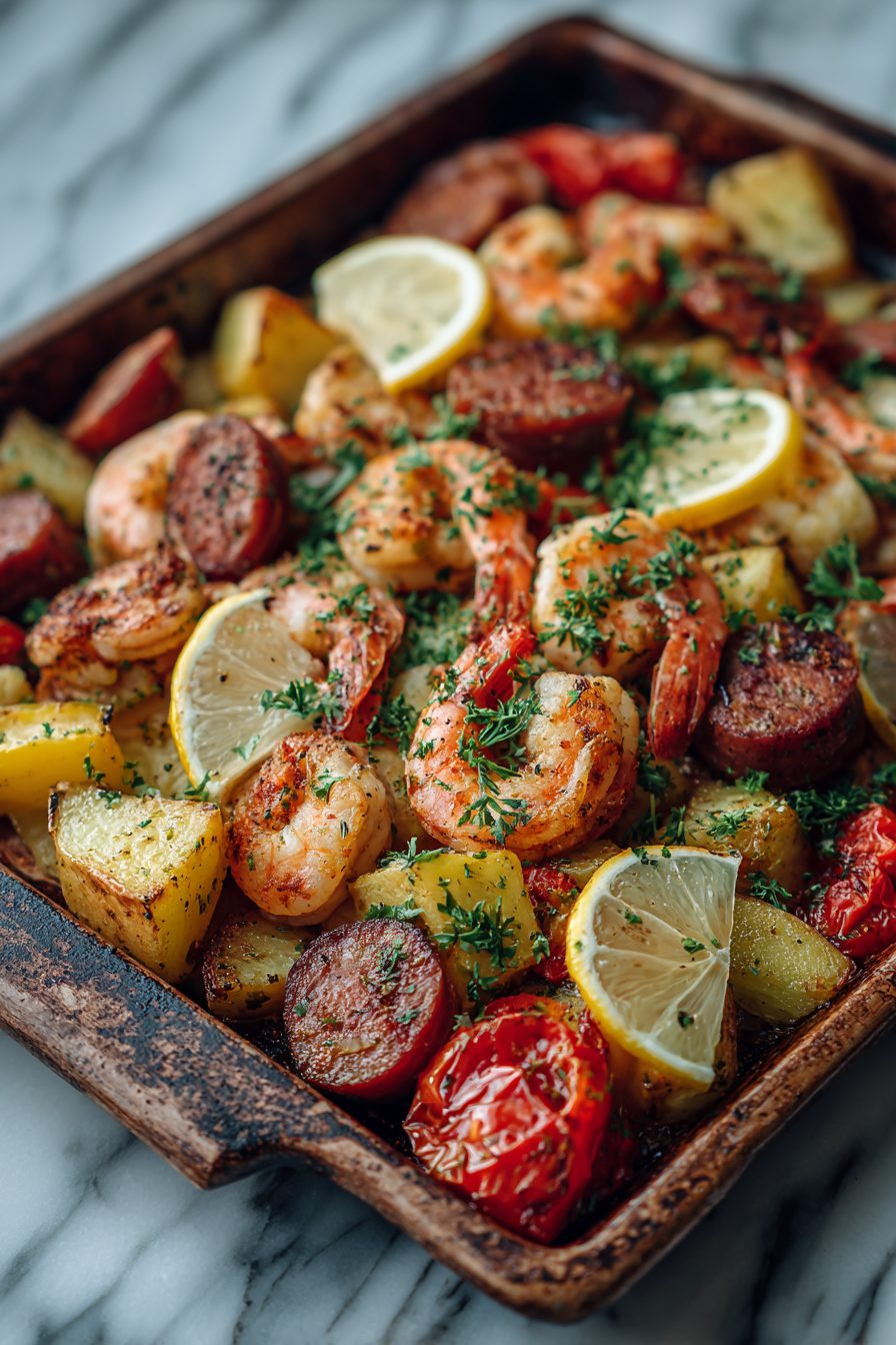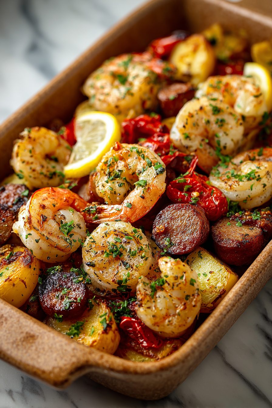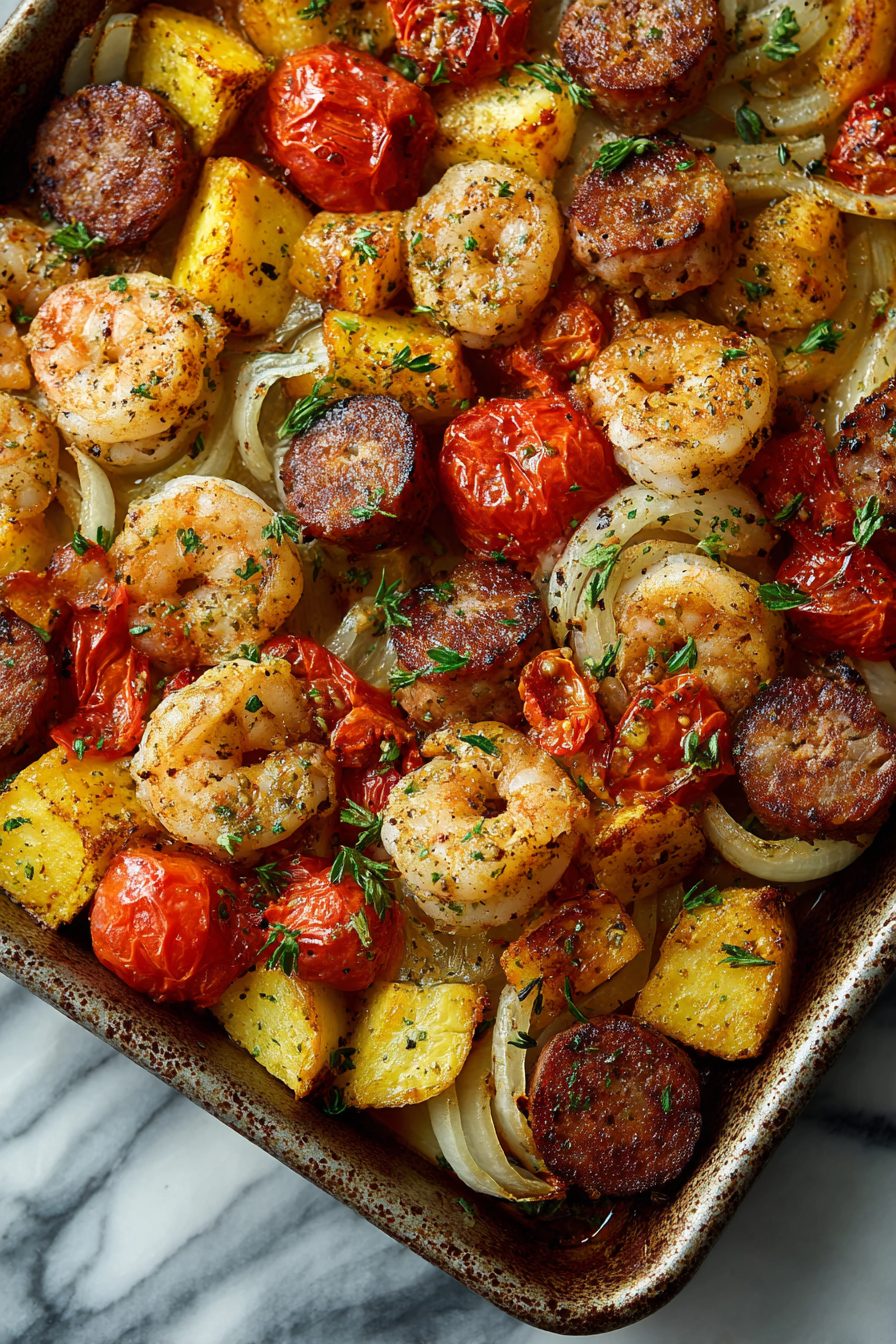 My husband calls this “the pan that fixes everything.” On nights when the kids have sports and I have three emails to finish, I toss everything on a sheet, roast, and pretend I planned the whole thing. Once I served it with crusty bread and he literally licked the pan (no shame). It’s become our go-to when I need food that feels like effort but isn’t — and yes, the kids will actually pick the shrimp out and eat their veggies sometimes. Small wins.