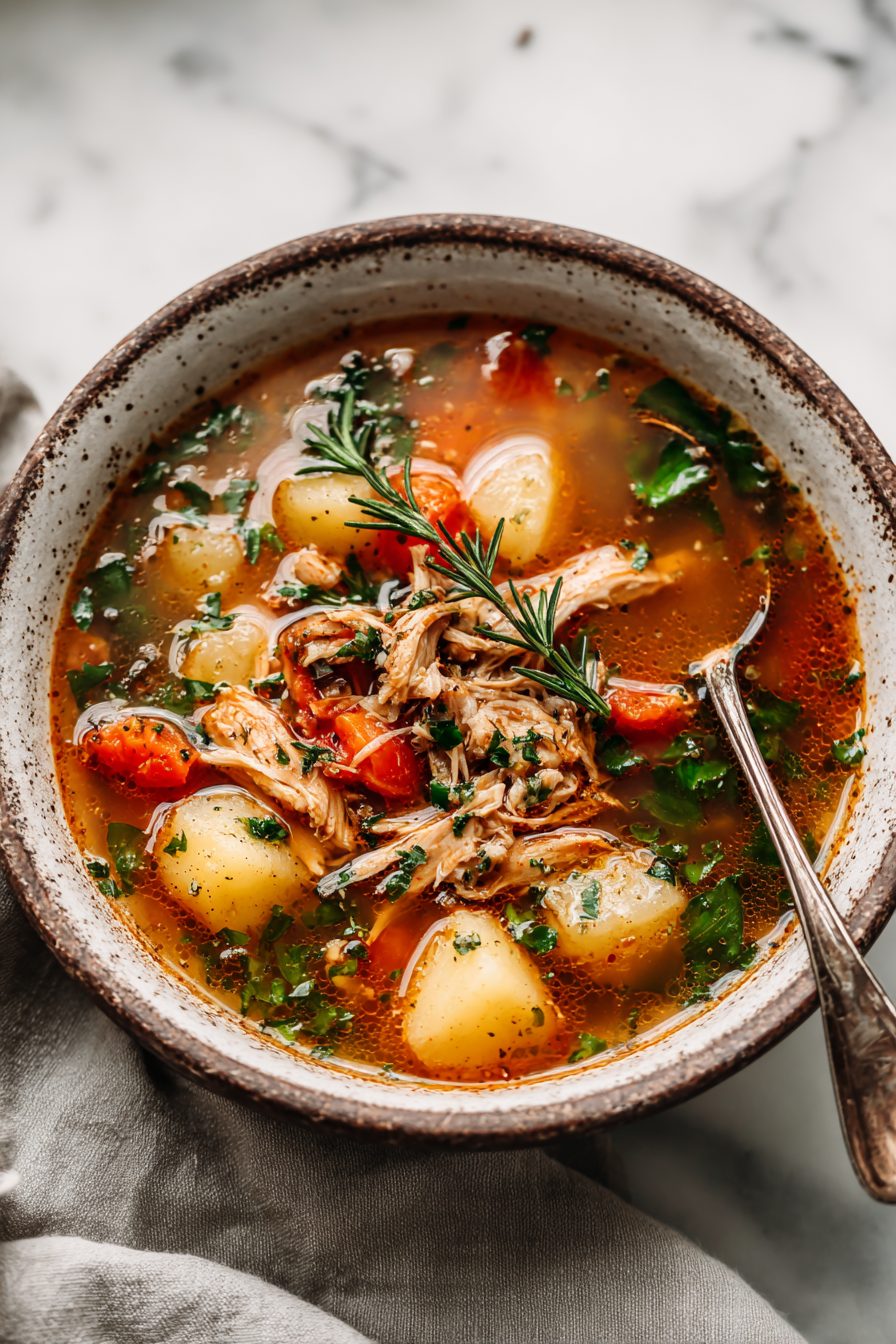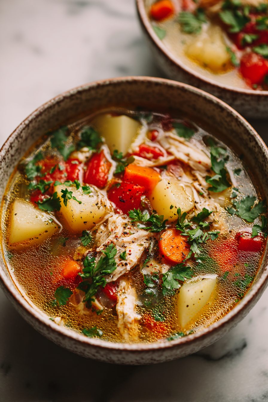 My family calls this our “soul-fixer” soup — a messy, lemon-bright, tomato-tinged chicken soup that somehow feels like both Sunday and Tuesday. It’s rustic, forgiving, and loud on flavor: browned chicken, aromatic soffritto (onions, carrots, celery), a hit of lemon, a handful of capers or olives if I’m feeling spicy, and tiny pasta or orzo to make it cozy. It doesn’t pretend to be fussy; it’s just the kind of bowl you want when life is loud and you need something warm and honest.
