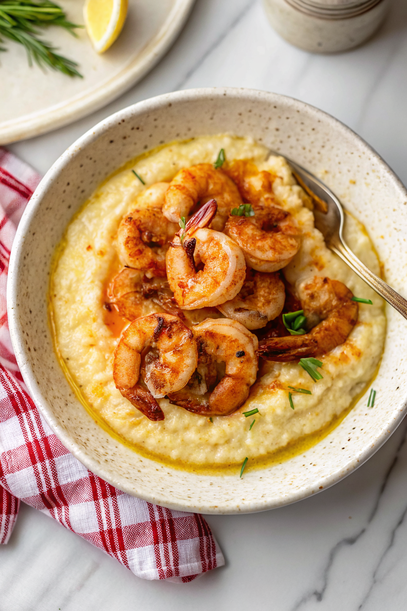 – Polenta swap: use creamy polenta instead of grits for a slightly different corn flavor and texture.