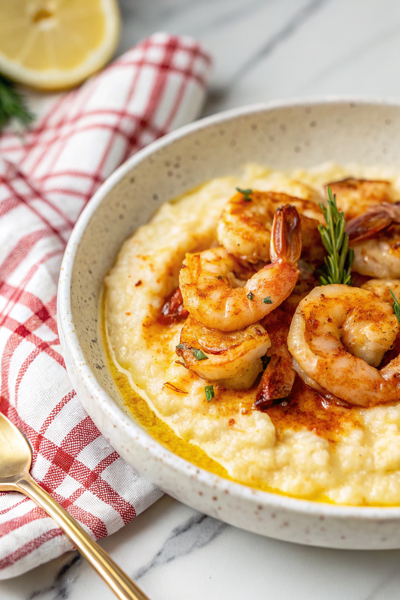 – The contrast: silky, cheesy grits against snappy, seasoned shrimp — textural heaven.