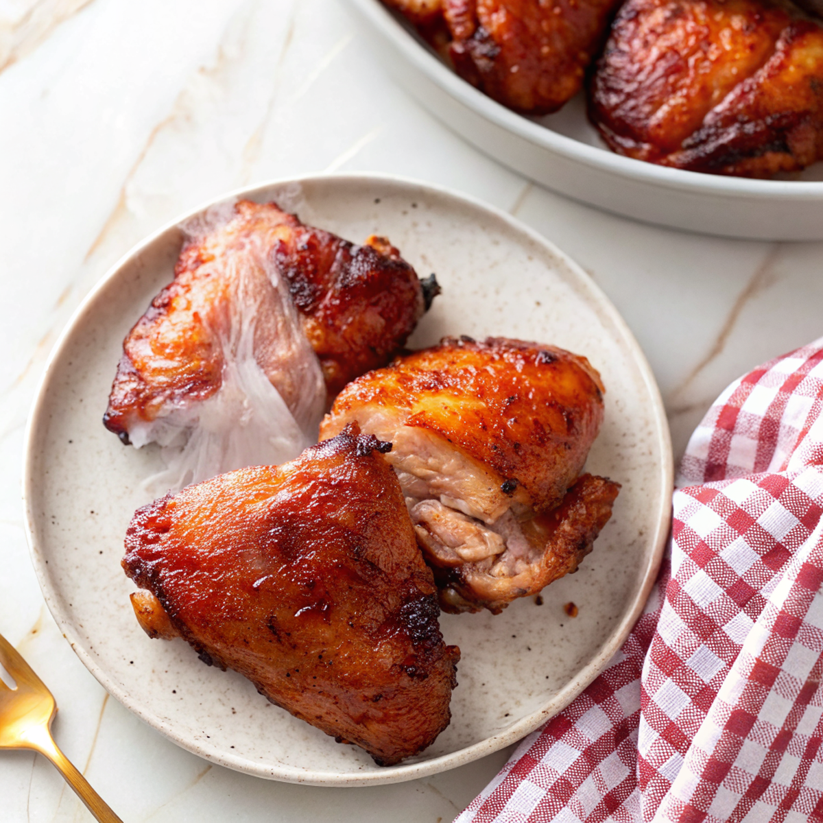 My husband practically does a happy dance when I pull these off the smoker. Not subtle. One night I came in late from work and just tossed thighs on with a lazy rub and a sauce that was more “eyeballed” than measured; he declared it a new holiday and tried to convince me we should celebrate “Smoked Chicken Night” weekly. Our kid calls the crunchy edges “chicken candy.” It’s become our staple when friends come over because nobody argues about who gets the last thigh.