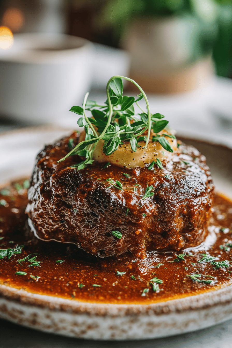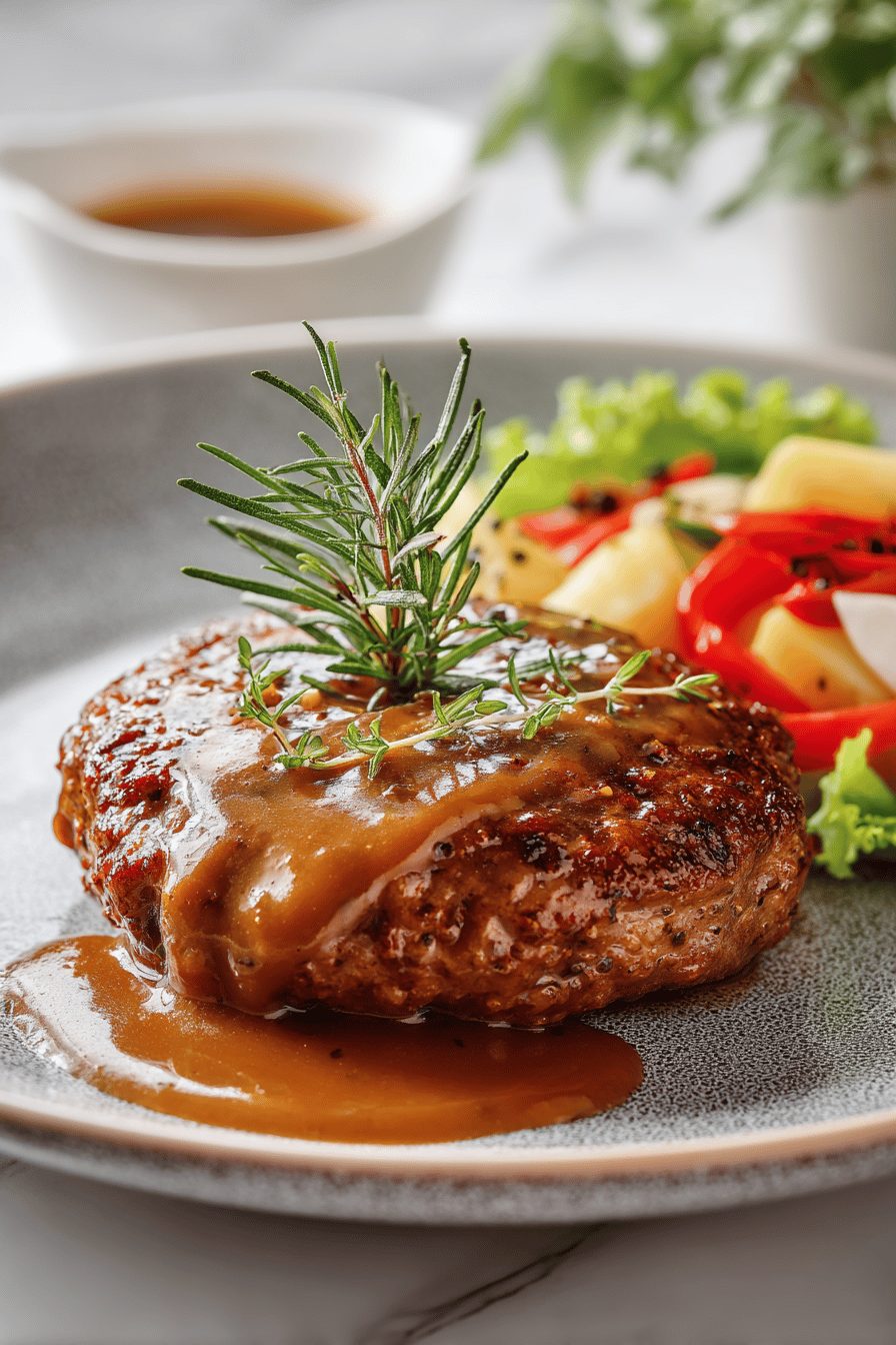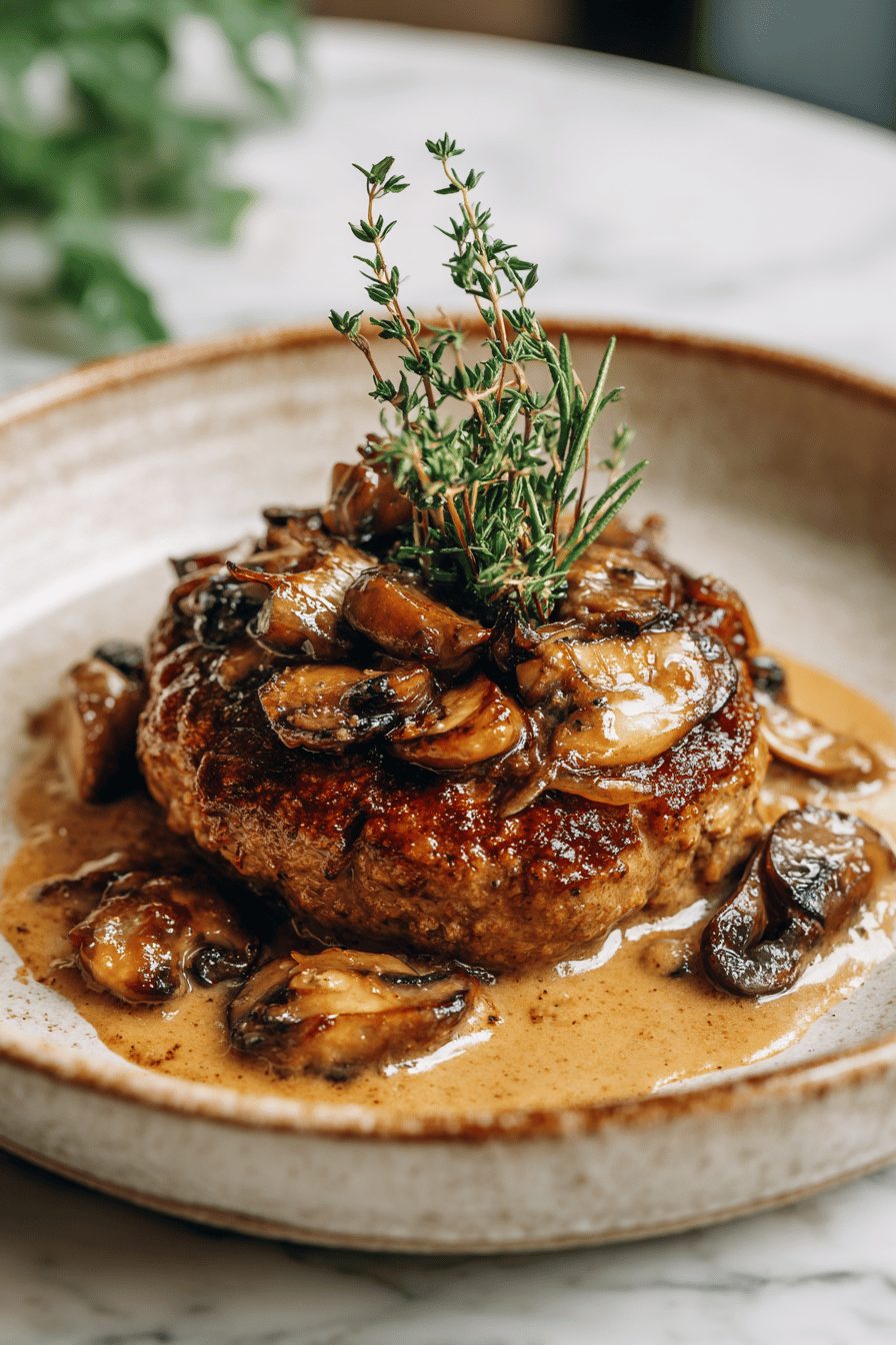 – Make the gravy base (caramelized onions + stock) in advance and reheat—then sear fresh patties and finish in the sauce.