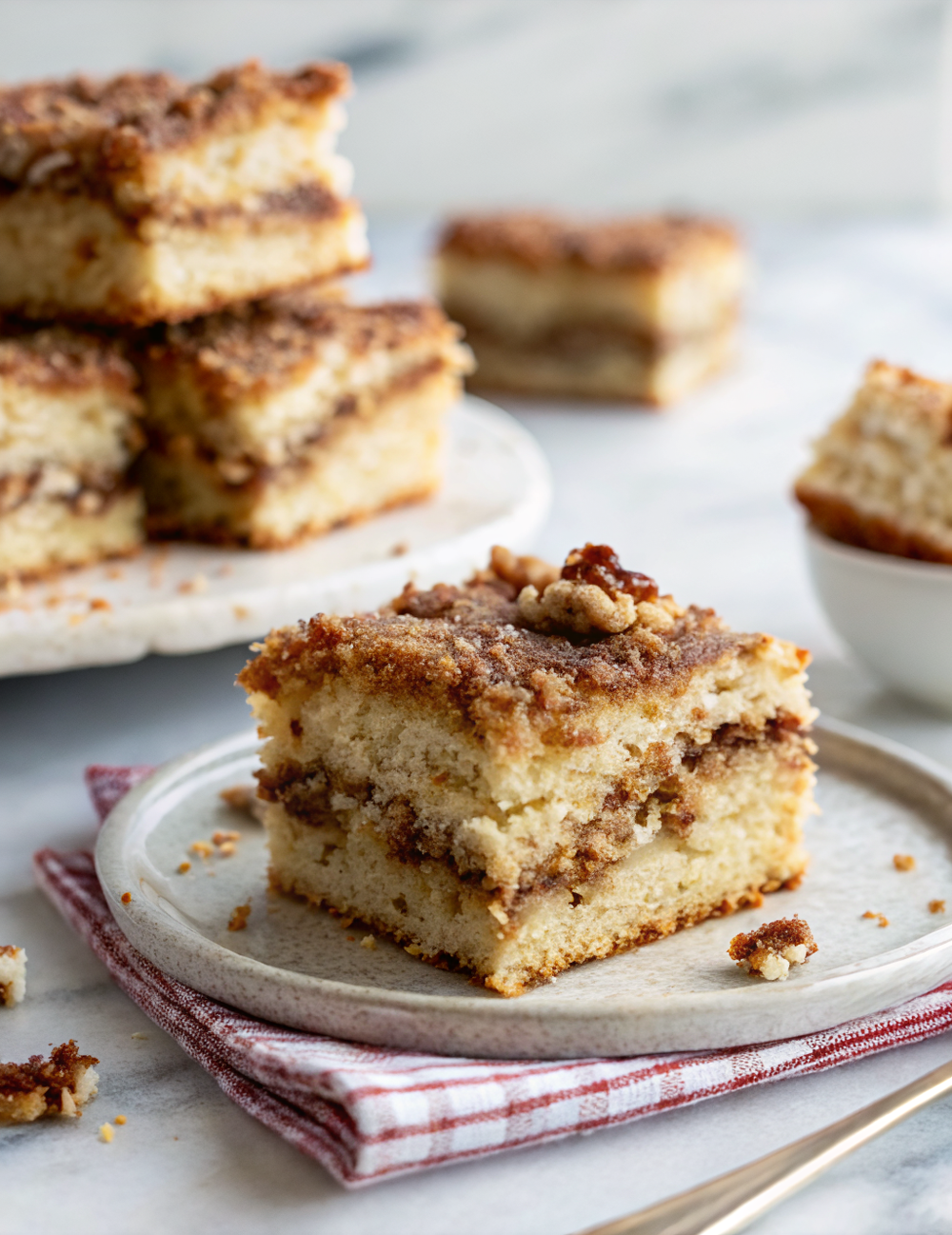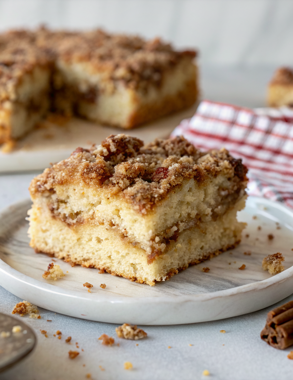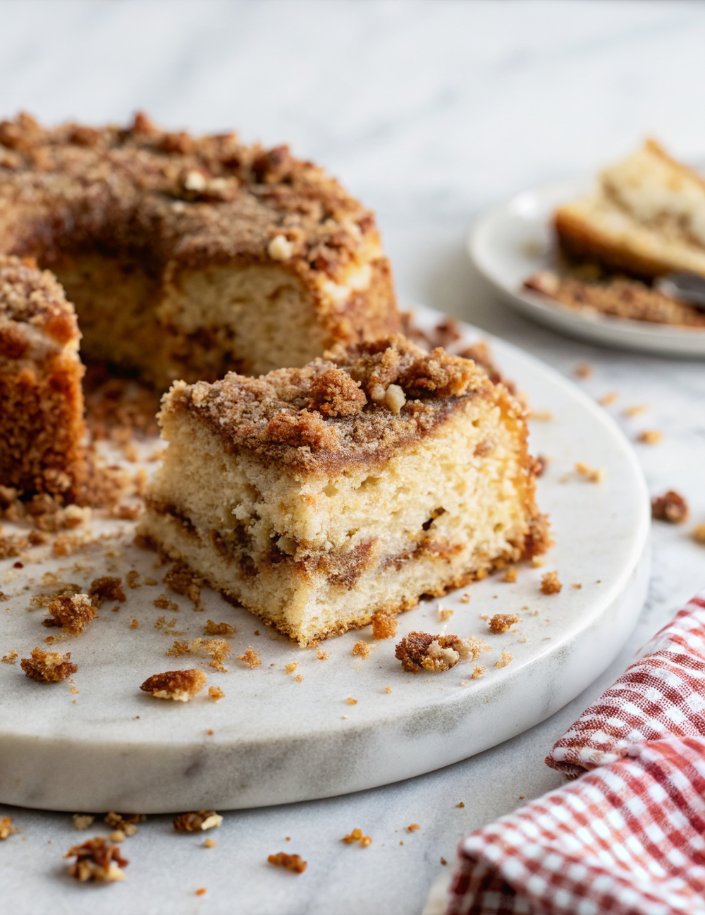 This cake is forgiving in all the best ways. I’ve overmixed, under-whisked the streusel, and once forgot baking powder in a desperate moment — the result was still eaten, loudly and with joy. Sour cream is the secret weapon here: it adds tang and softness that a plain butter cake doesn’t have. Also, don’t skip the cinnamon in the streusel; that little bitter edge balances the sweet so nicely. Oh, and if your oven runs hot, tent the cake with foil halfway through — I learned that the hard way when my top looked like it was sunburned.