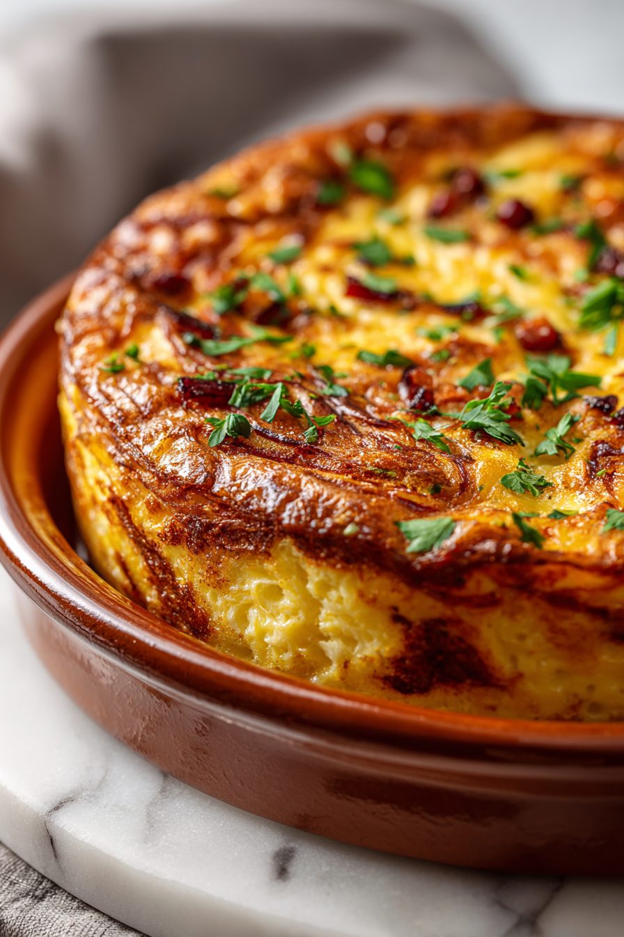 This thing is equal parts thrown-together and deliberate. I once tried to make it with cold, sticky spaghetti straight from the sauce pot and ended up with a gloopy disaster — so now I always toss the pasta with a little oil before mixing with eggs. I’ve swapped in whatever cheese is sad in the back of the fridge and most of the time it sings. If you’re impatient like me, do half the browning on the stovetop and finish under the broiler for that golden crown.