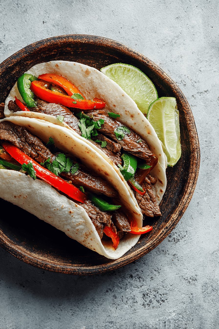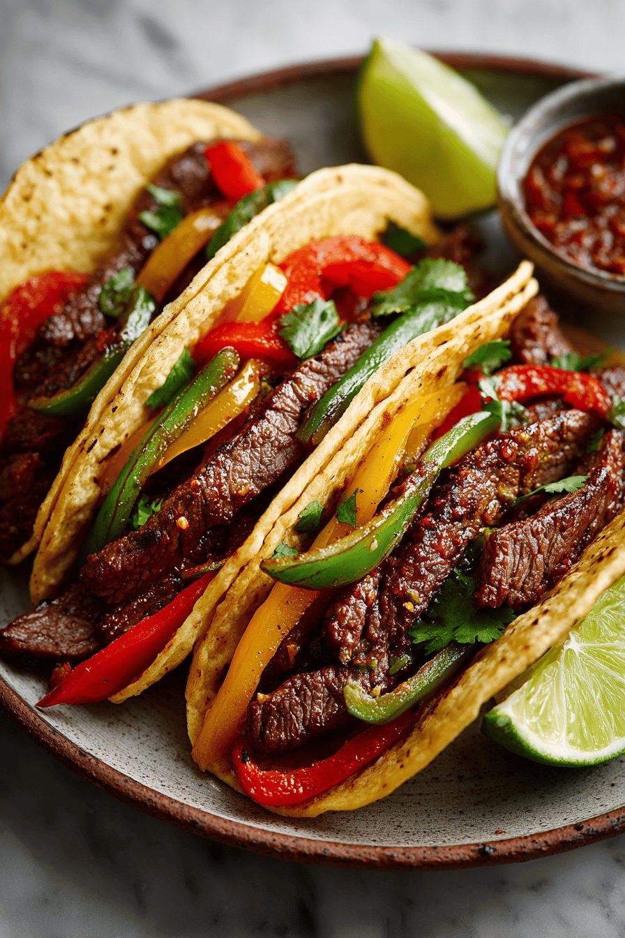 This is my go-to weeknight dinner that somehow feels like a fiesta and not a microwave night. Spicy steak fajitas: thin strips of steak seared until they’re slightly charred, tossed with sweet peppers and onions, splashed with lime, and wrapped up in a warm tortilla. It’s fast, loud with flavor, forgiving if you overcook the peppers by a minute, and everyone at the table gets to build their own perfect bite.