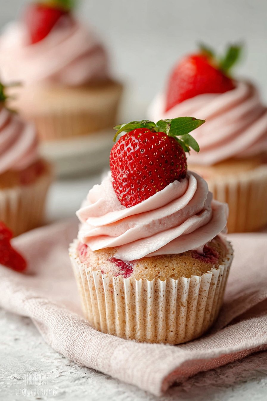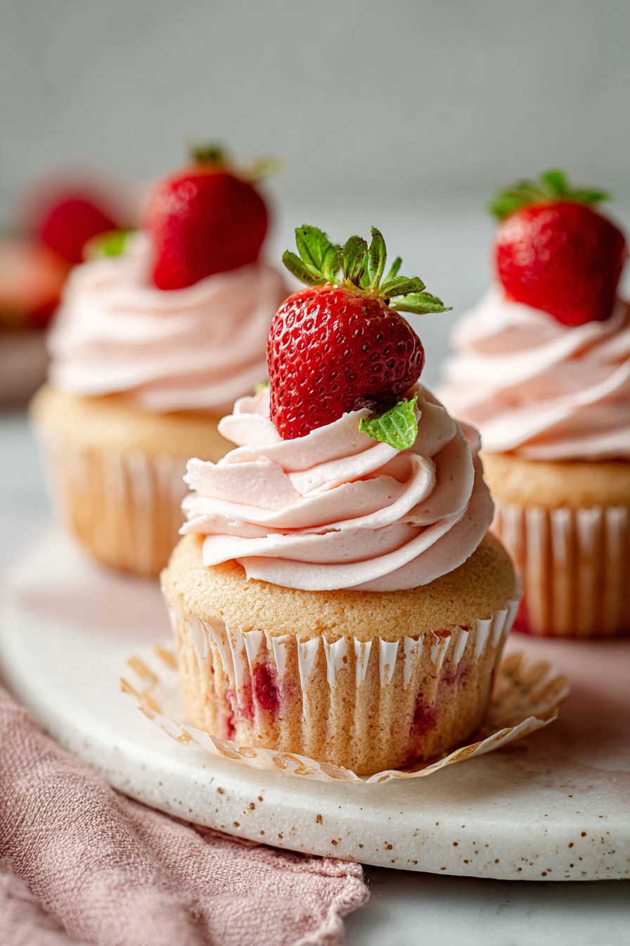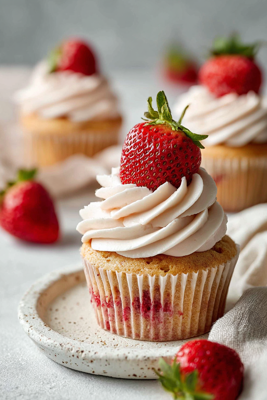 These strawberry cupcakes turned out beautifully—moist, fluffy, and packed with real strawberry flavor that wasn’t too sweet. The buttercream was creamy and luscious, with just the right balance of tanginess and richness, making them a hit with both kids and adults at our family gathering.