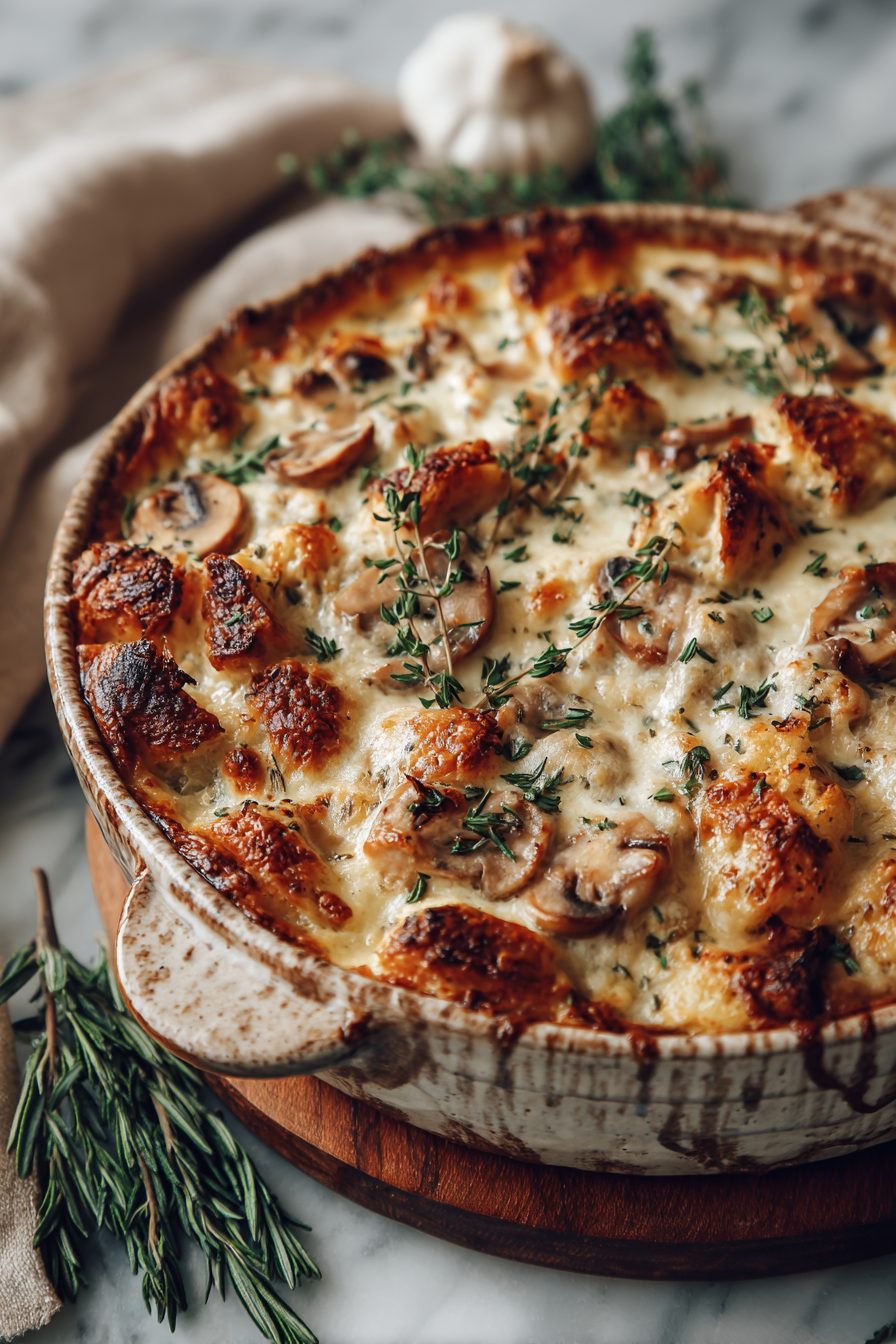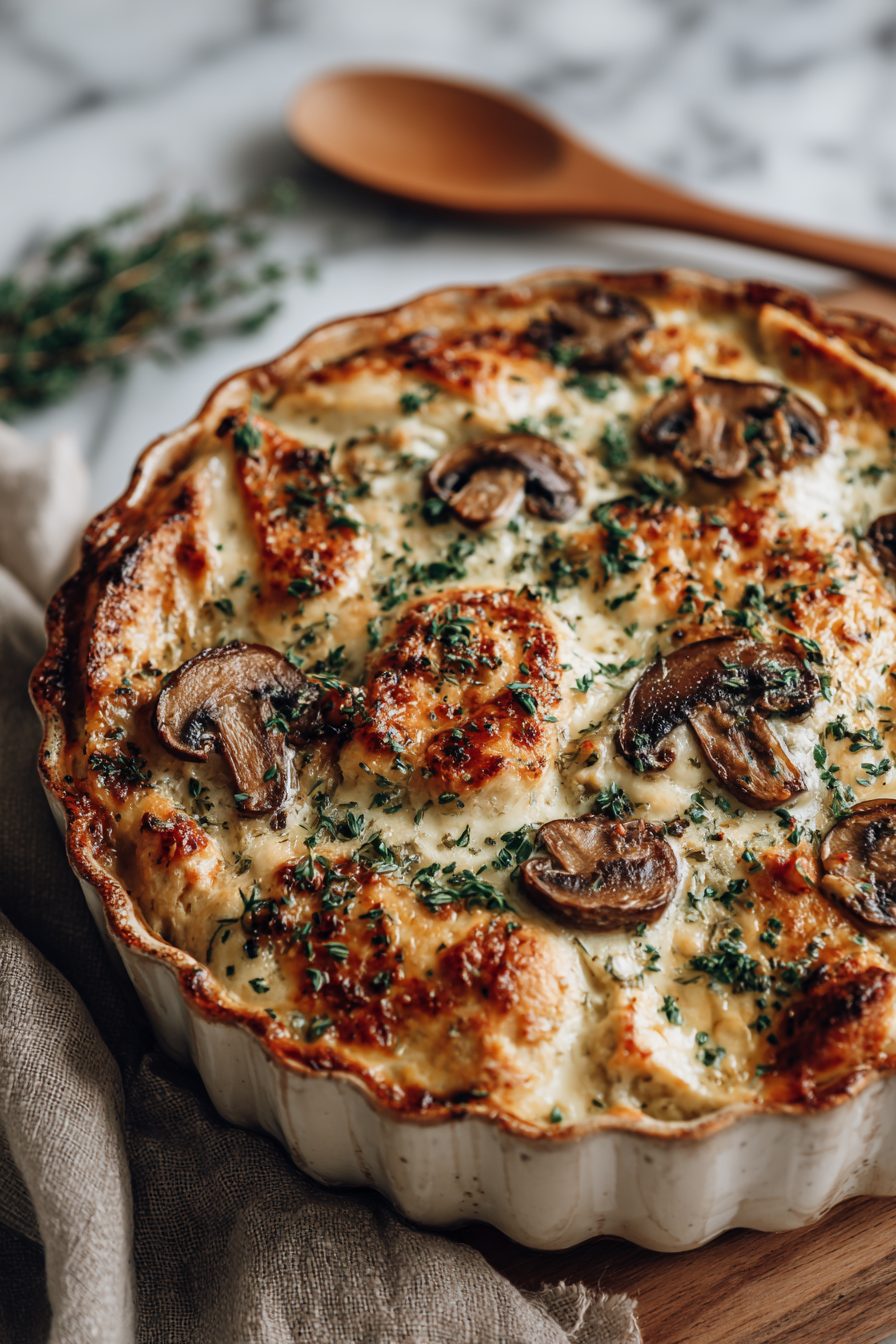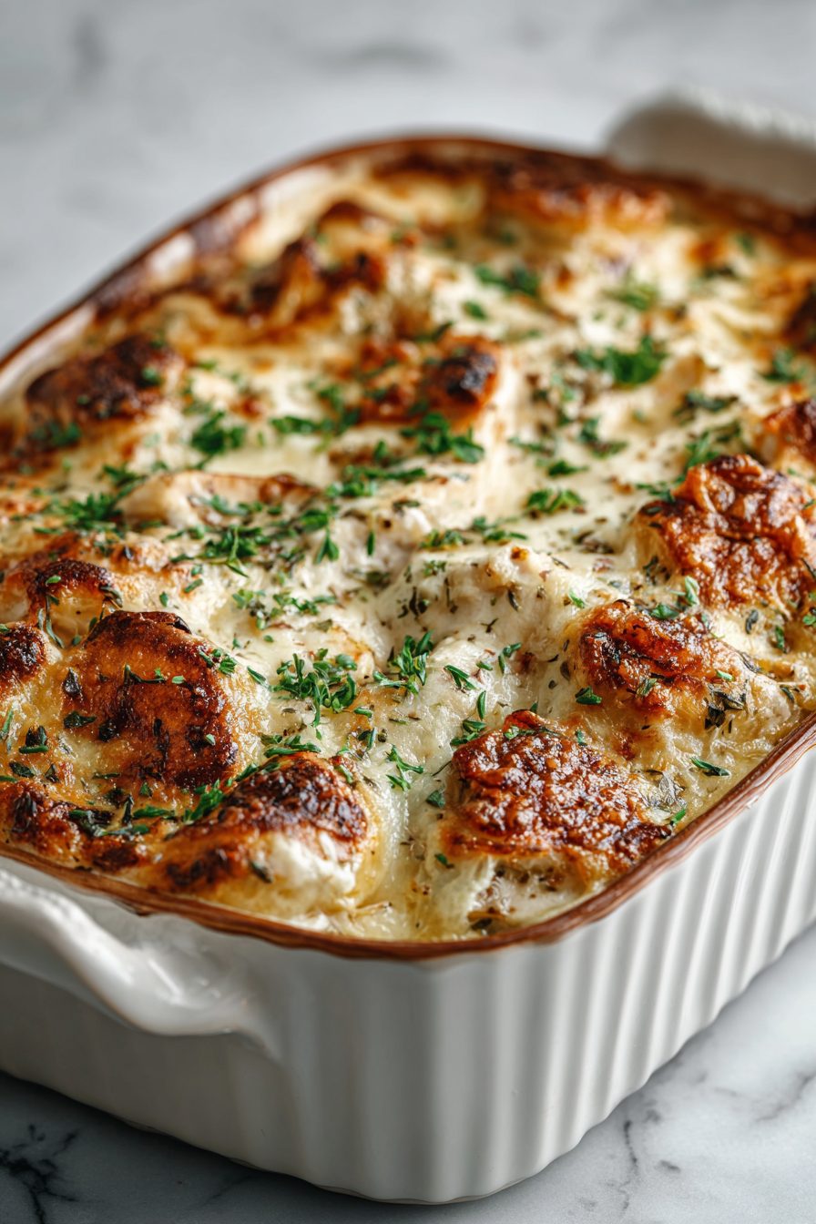 - Bake 35–45 minutes, until topping is golden and chicken reaches 165°F. Rest 5 minutes.