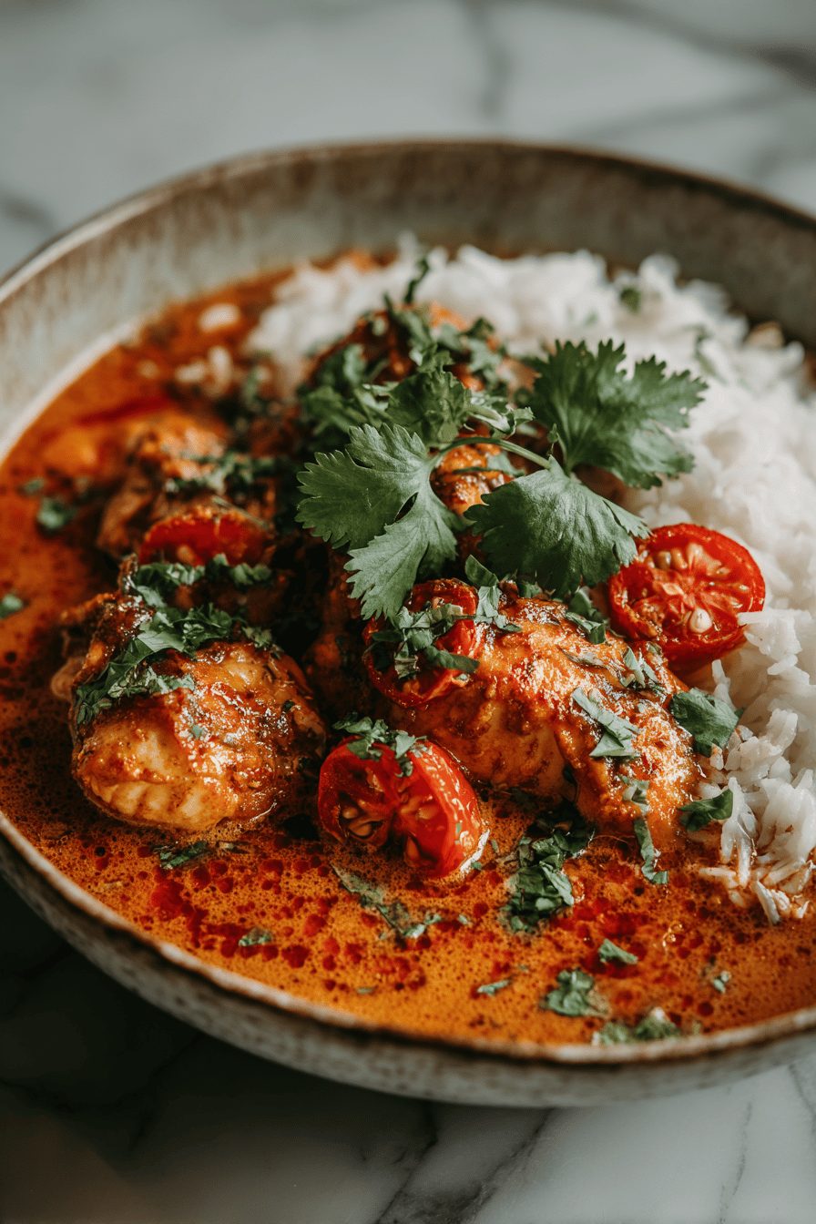 This stew is the kind I make when I want something cozy, a little spicy, and wildly forgiving — chunky tomatoes, fresh ginger that sneaks up on you, and flaky fish that melts into the sauce. It’s bright, warm, and not precious: a weeknight one-pot that somehow feels special enough for company but lazy enough for Tuesday. If you love tomato-based braises and want fish that actually holds together and tastes like something rather than nothing, try this.