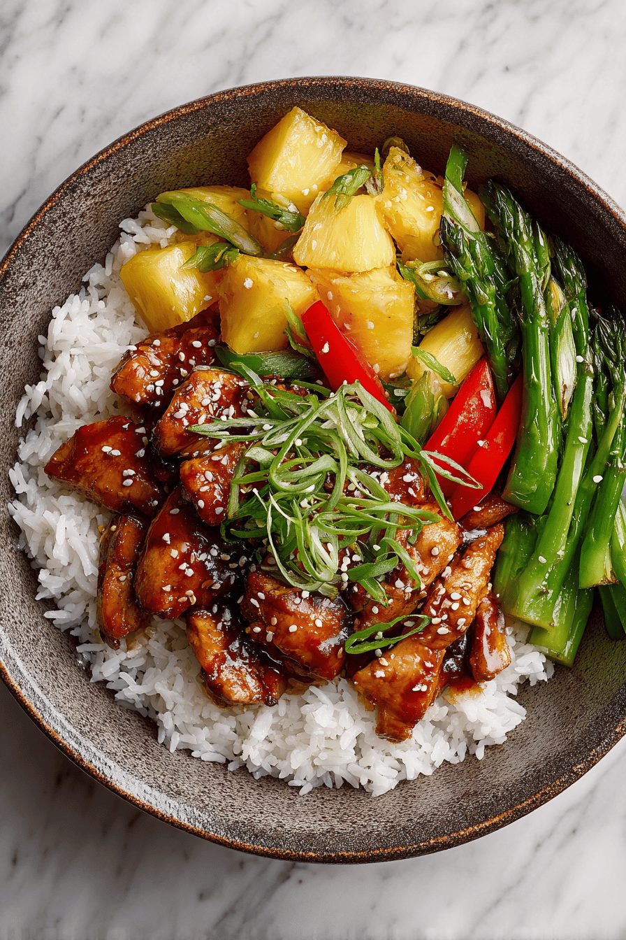 I once tried this with balsamic instead of rice vinegar because I was out of the right stuff. It was… interesting. The family politely finished it, but we all agreed it tasted like an identity crisis. I also learned that adding pineapple too early turns it into a sad, mushy thing—char it quick, then toss it in right at the end. When you reduce the sauce, watch it like a hawk; it goes from glossy to scorched in a heartbeat. My favorite accidental win: a splash of toasted sesame oil at the end makes people swear it’s a restaurant dish.