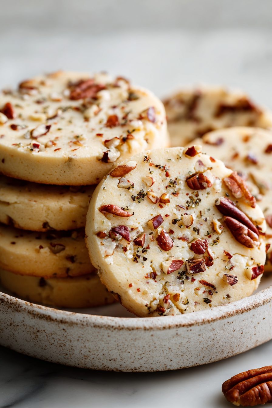 These Toffee Pecan Shortbread Cookies are pure heaven—buttery, rich, and packed with crunchy toasted pecans and those sweet toffee bits that make every bite decadent.[1][2] The recipe is super simple, just cream butter with sugar and vanilla, fold in flour, nuts, and toffee, chill the logs overnight, and slice to bake—total win for busy days.[2] They're a tad delicate straight from the oven so let them cool fully, but honestly, worth every crumbly moment![5]