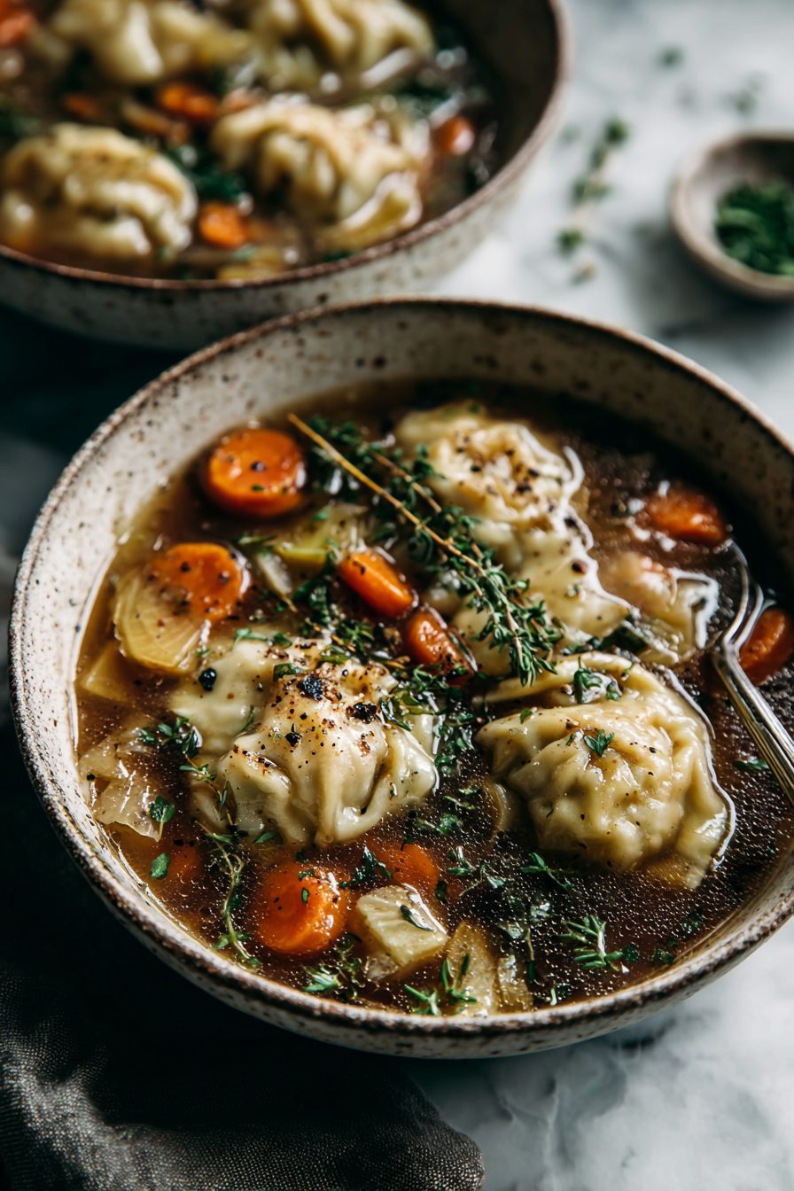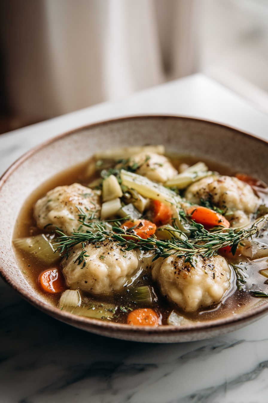 – Dumplings that are soft, a little chewy in the middle, and soak up broth like tiny pillows of joy.