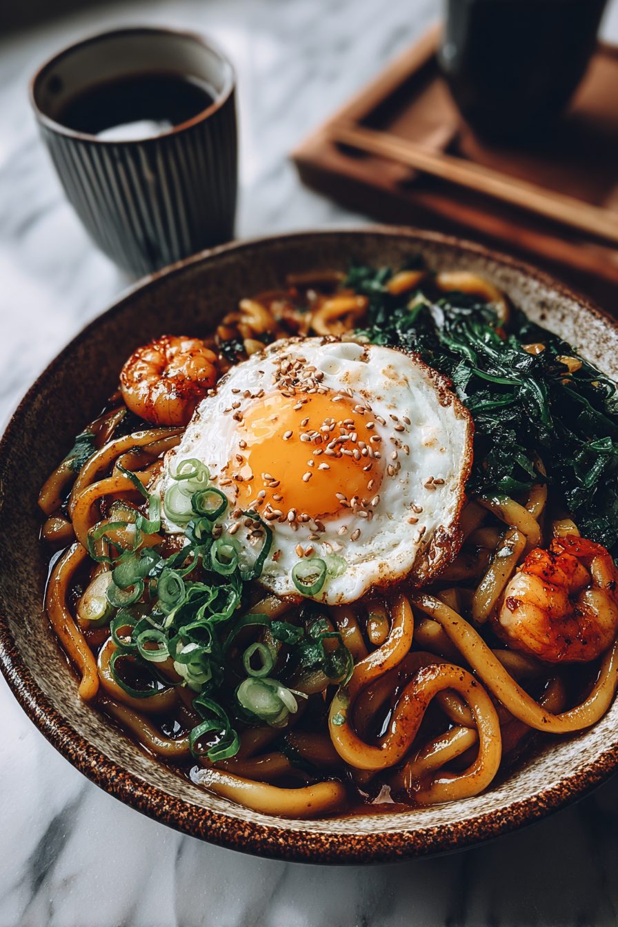This recipe is an original creation inspired by classic Yaki Udon with Shrimp Recipe flavors. All ingredient ratios and instructions are independently developed.