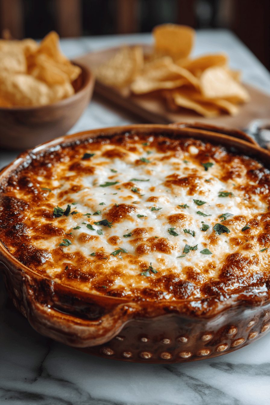 – Bake in a shallow, wide dish so the dip heats through faster and you get more bubbly surface area.